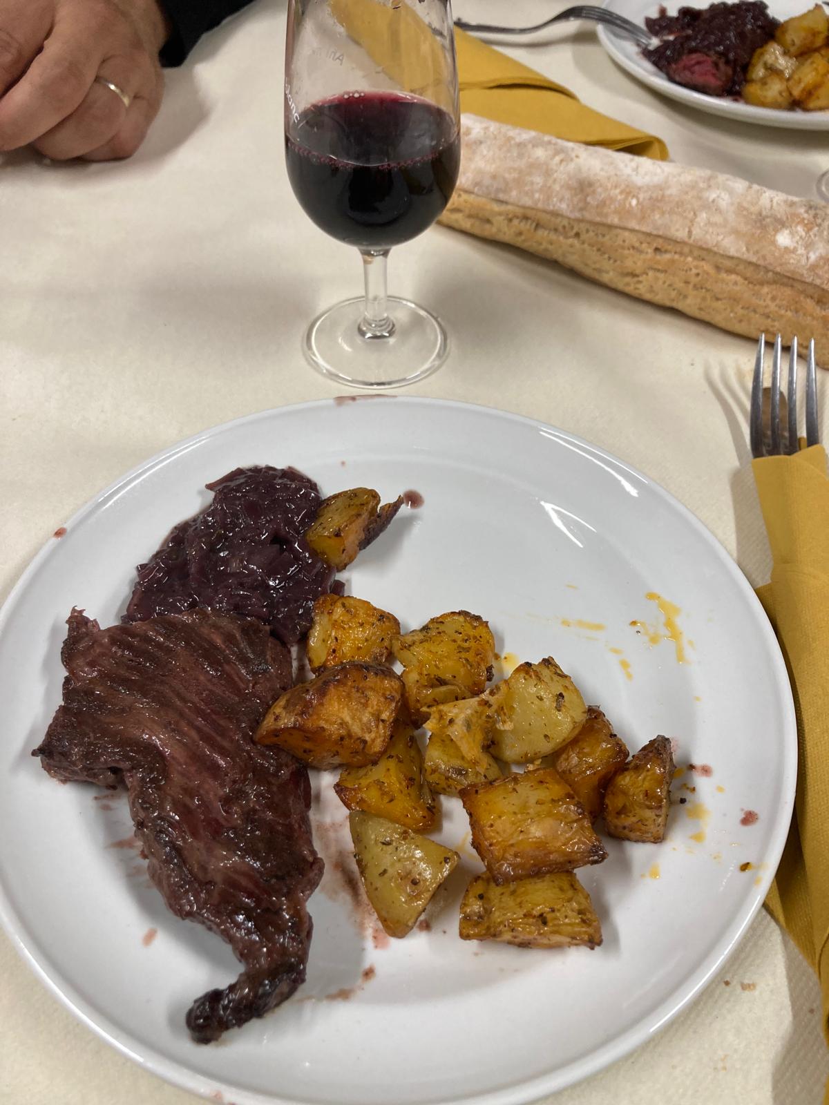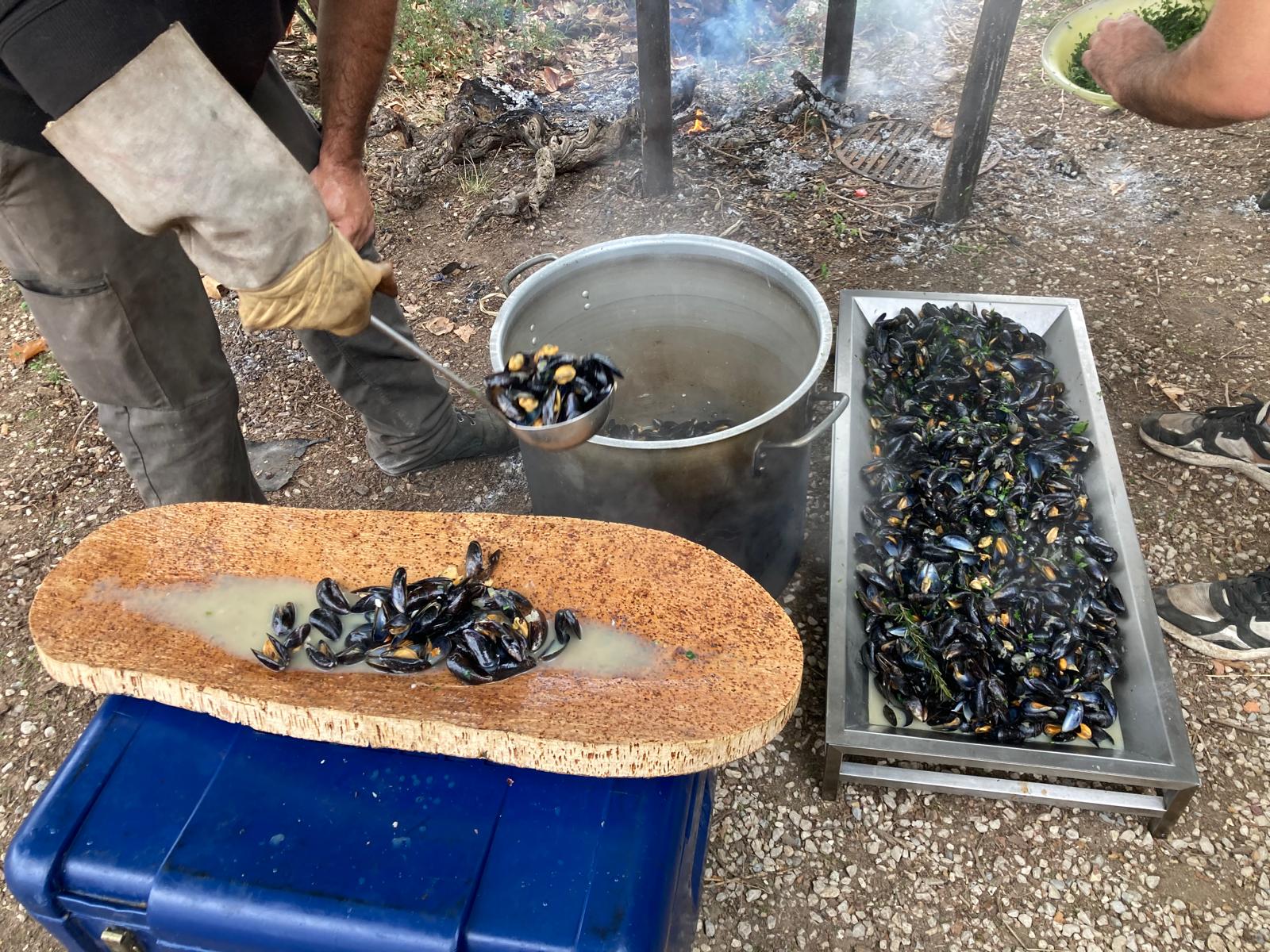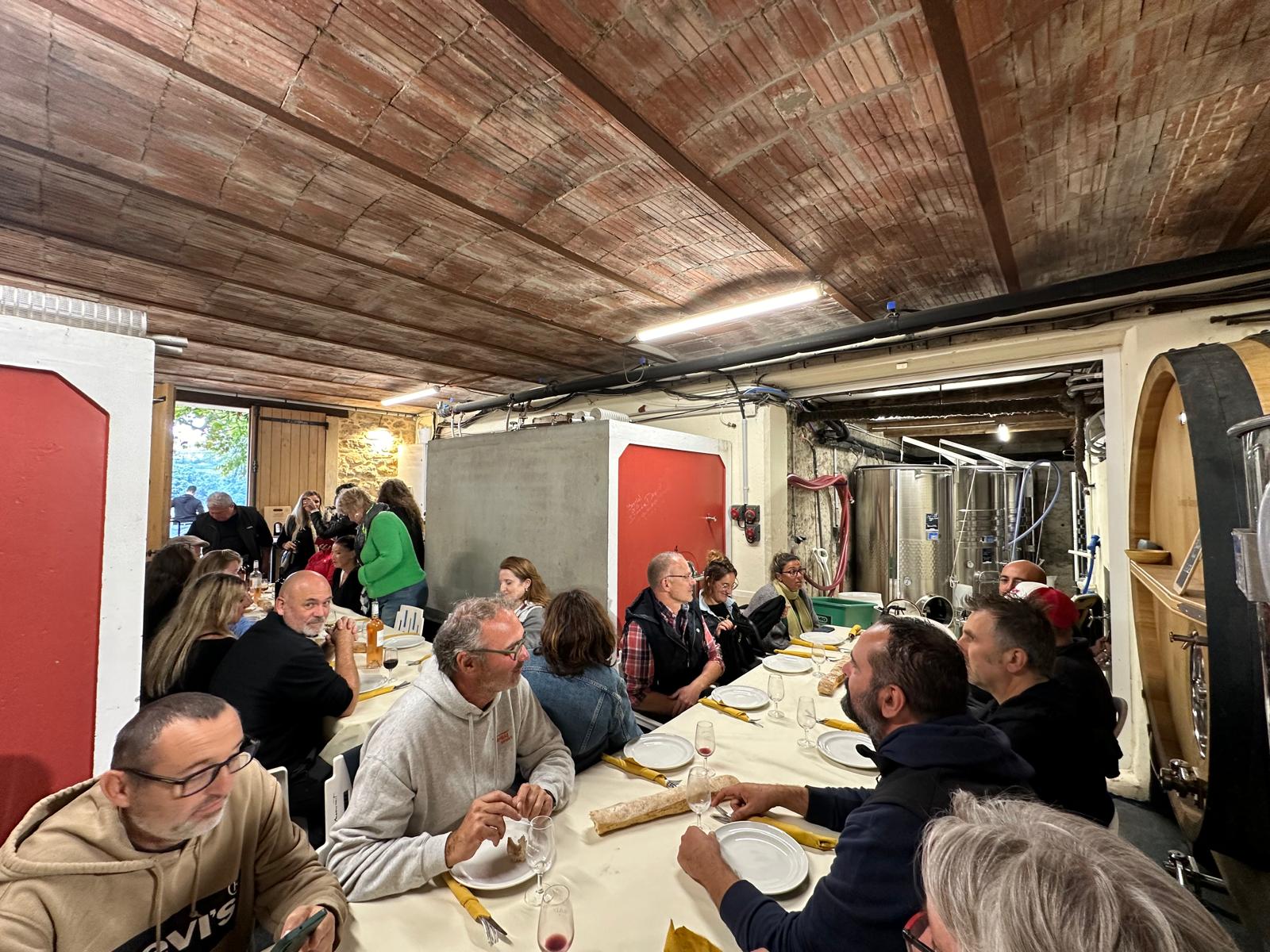 Nous avons ainsi assisté à une dégustation des différents vins avec une visite de la cave suivie d'un repas: moules en entrée, onglet avec accompagnement et dessert.